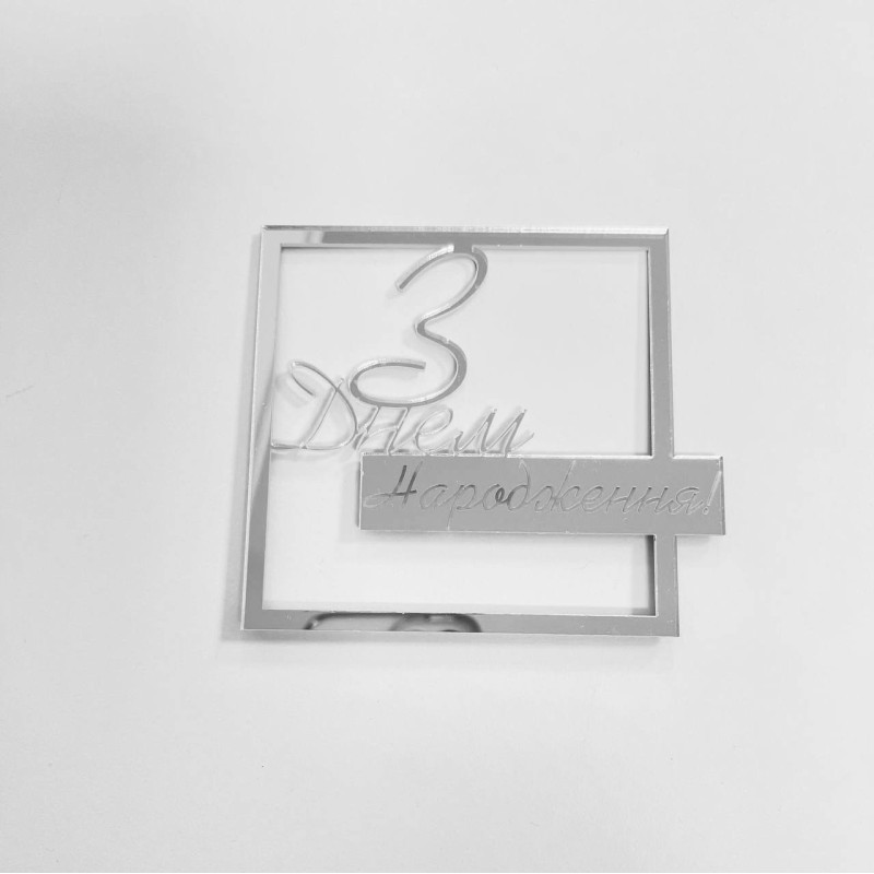 Топер акриловий боковий “З днем народження” срібло.Розмір - 10 х 10 см...