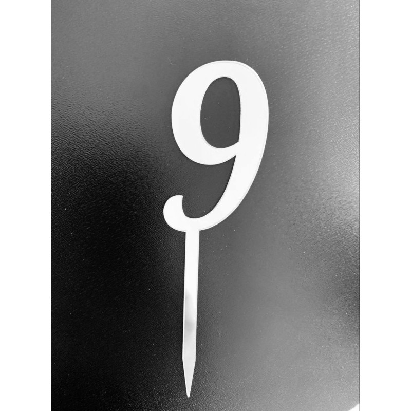 Топер-цифра акриловий “9” срібло.